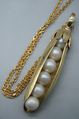 Halsschmuck - Erbse aus Gold 585, Süsswasserperlen