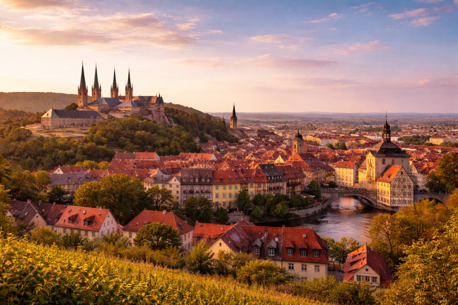 Bamberg ist eine der am besten erhaltenen historischen Städte Europas. Die Stadt wurde im Zweiten Weltkrieg kaum zerstört und bewahrt bis heute ihre mittelalterliche Struktur nahezu vollständig.